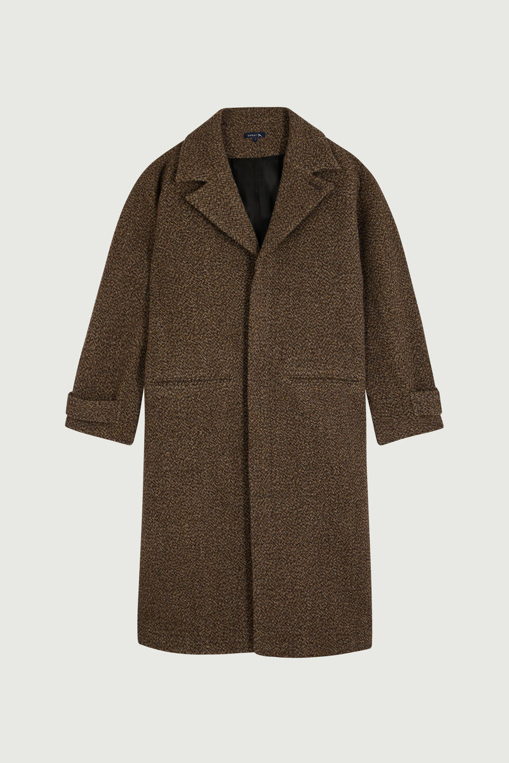 BRIGHTON is a loose-fitting woollen coat. With raglan sleeves, it softens the silhouette and can be worn with the collar open or closed, offering different styles. The concealed button placket opening and two welt pockets add a sleek touch. Subtly plain, it pairs effortlessly with seasonal colours.