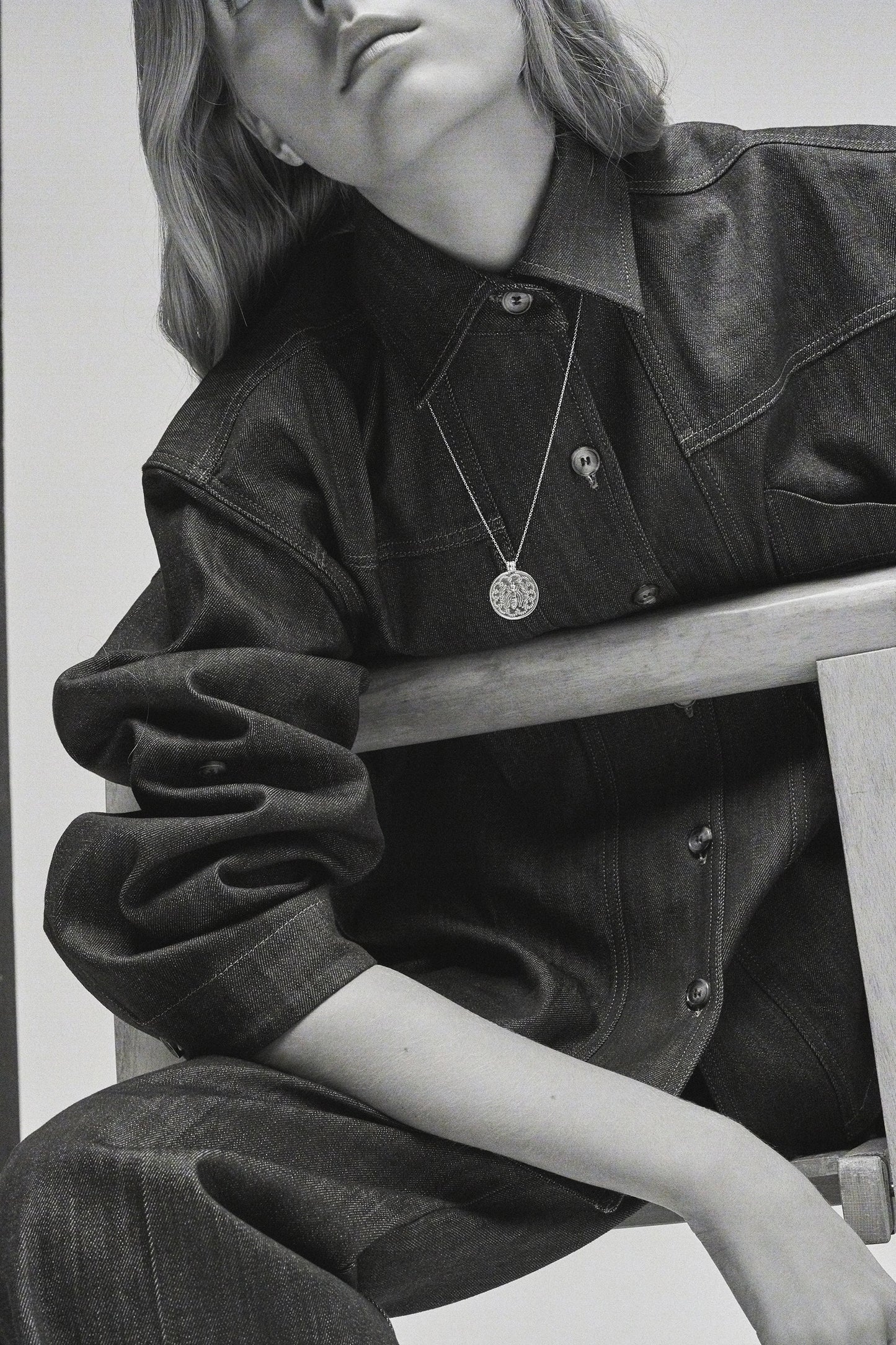 DOMITILLE 3 est un pendentif rond en vermeil décoré d'une abeille. Les motifs à l'intérieur de la médaille sont gravés par martelage.
