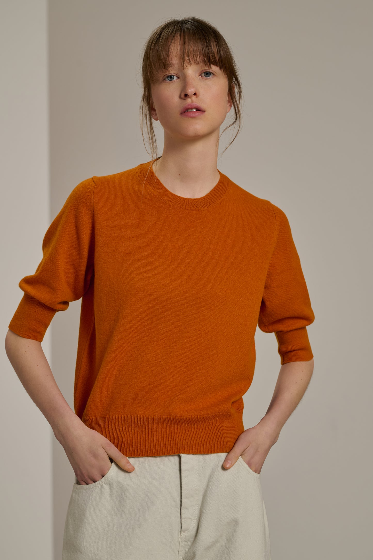 BAIE est un petit pull manches courtes, tel un tee-shirt d'hiver. Tricoté dans un fil de cachemire, sa douceur se porte à même la peau. Sa coupe est droite et ample, décollée du corps pour vous assurer confort et aisance.