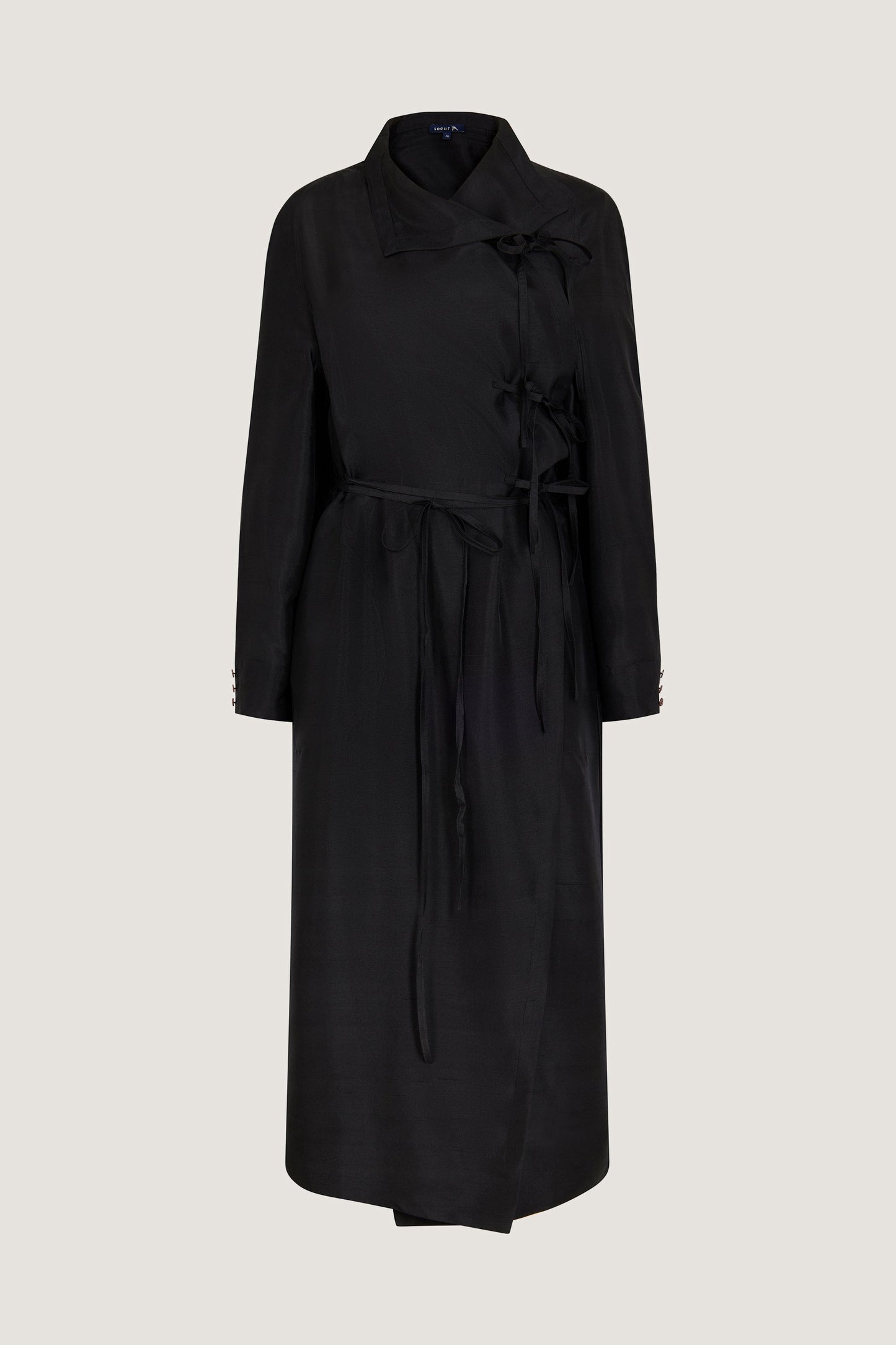 SUSIE une robe est une robe à l’allure « couture » et à la construction raffinée. C'est une modèle cache cœur qui se referme jusqu’au col par un jeu de liens à la taille et à la poitrine. Le volume droit est modulable, se nouant et s’adaptant au corps selon les envies.