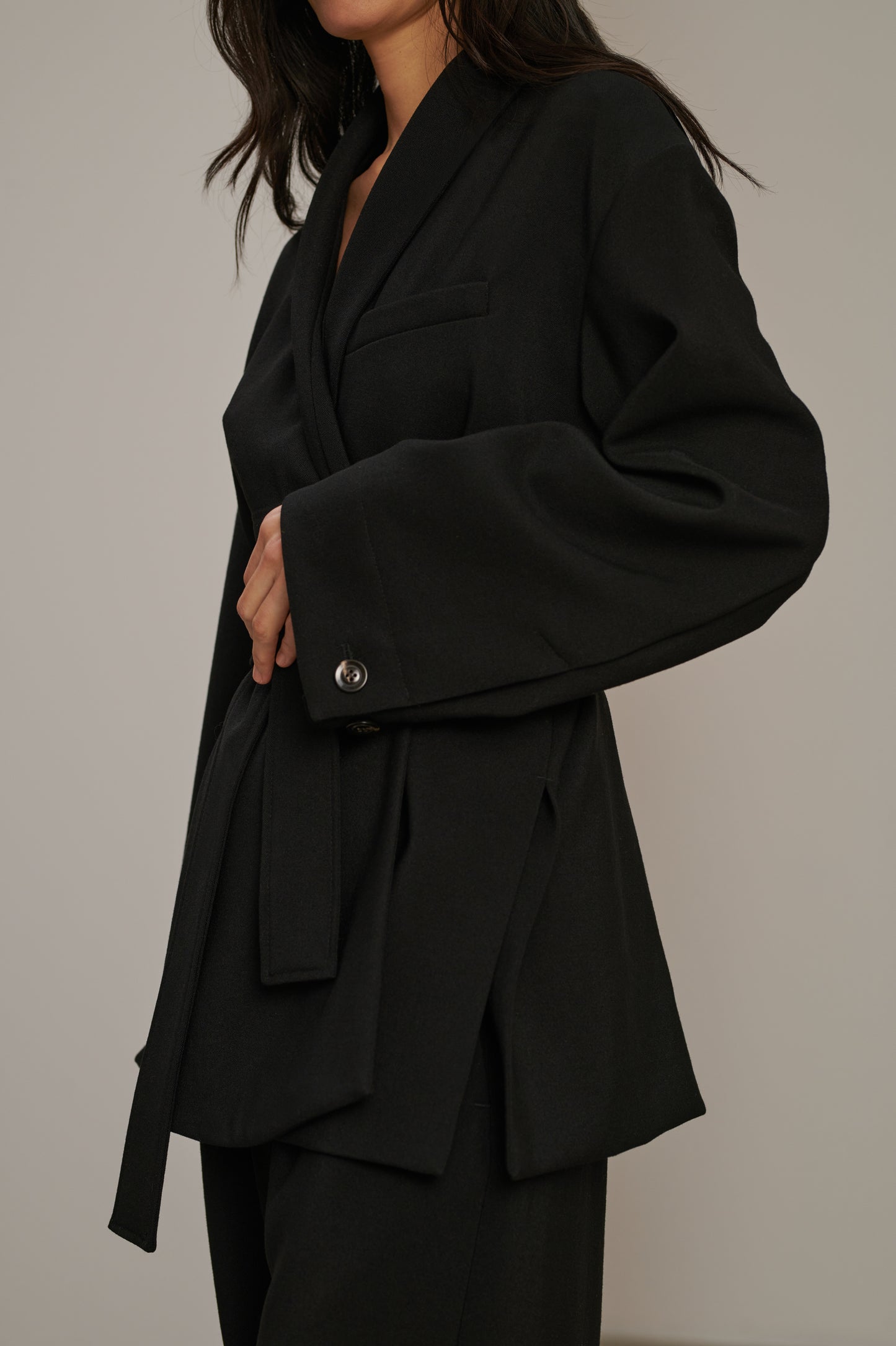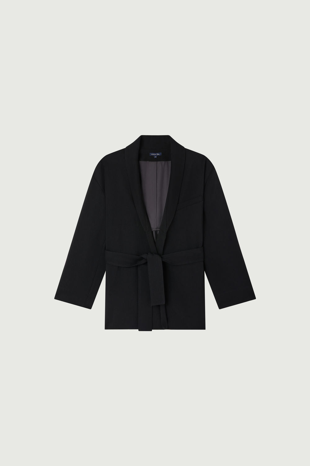 COME est une veste en grain de poudre léger d'un genre nouveau. À la coupe type "peignoir" décontracté, elle est sublimée par l'usage d'un tissu élégant.